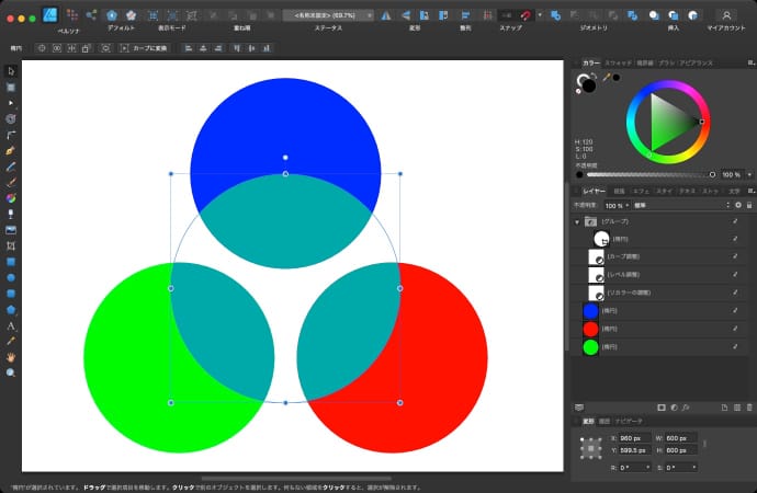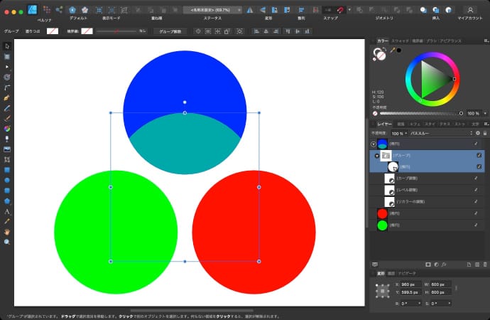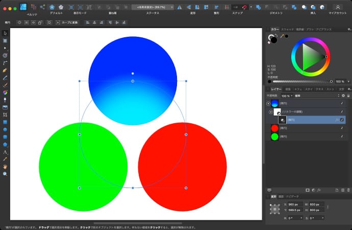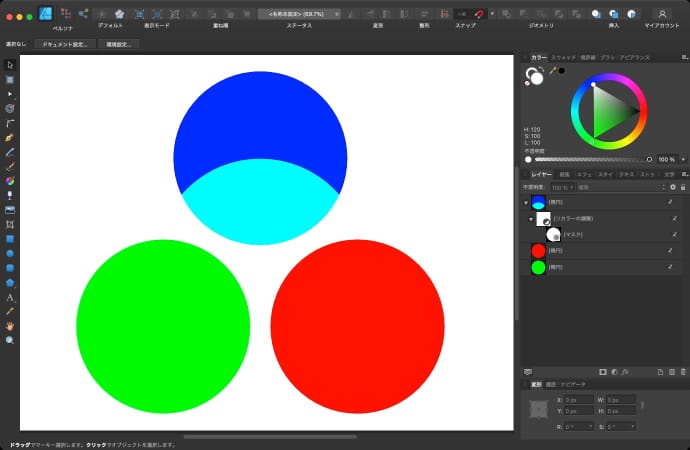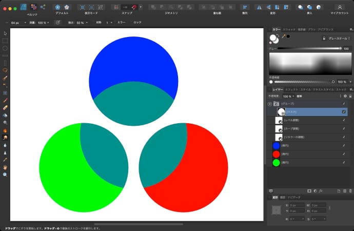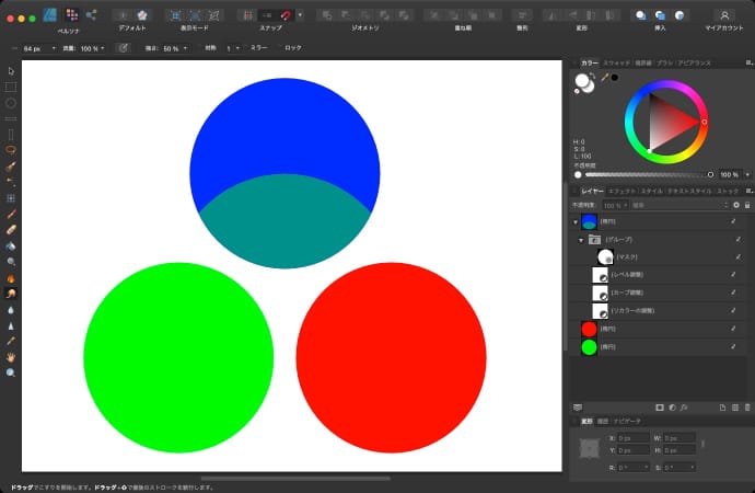 Mac版のAffinity Designerで特定の範囲にだけ調整レイヤーを使う方法について解説します。