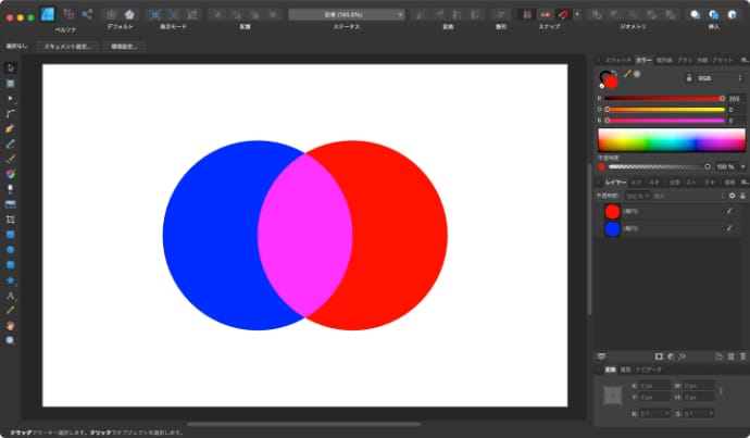 Affinity Designerのブレンドモードは、ヘルプを見ても「乗算」「スクリーン」「オーバーレイ」「色焼き込み」についてのみ簡単な説明が書いてあるだけで、具体的な処理方法は書いてありません。