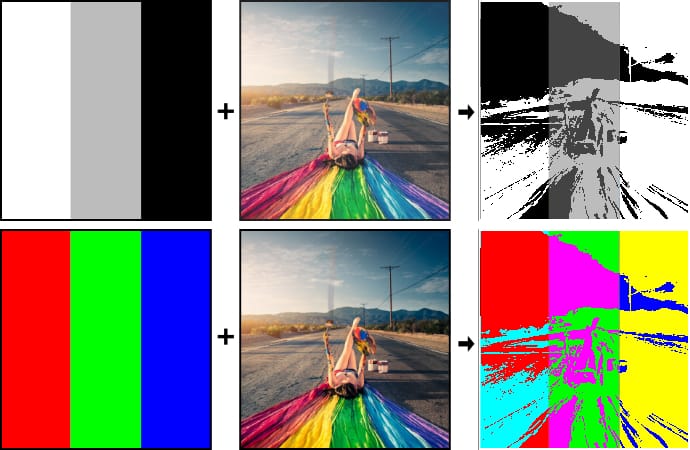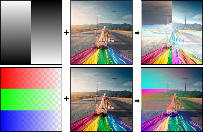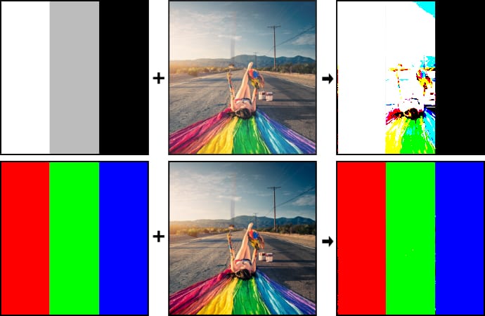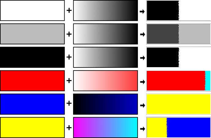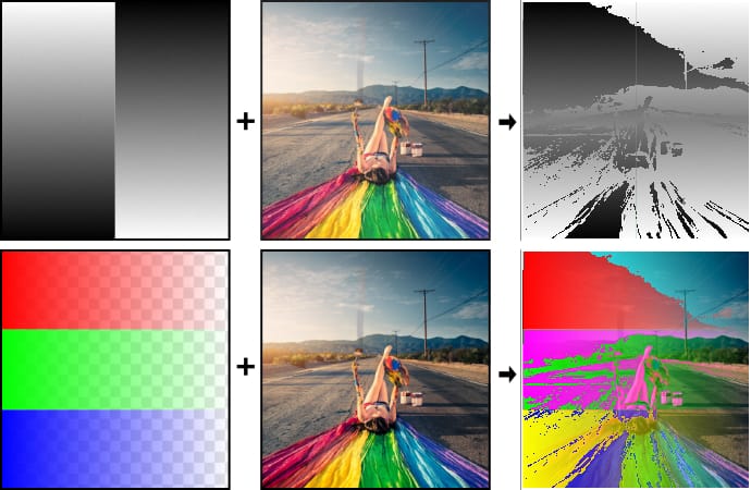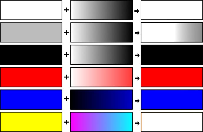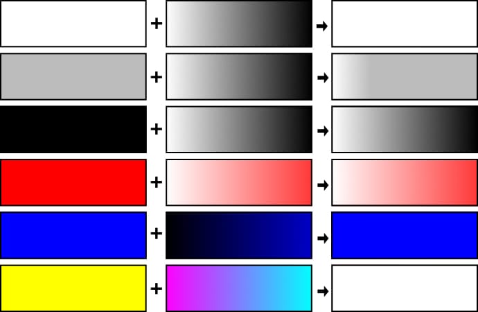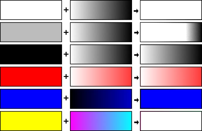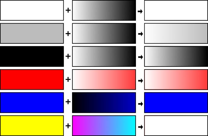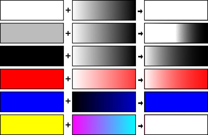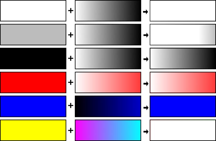 ただし、ウィキペディアに載っていないブレンドモードもあり、処理方法についてはブラックボックスな部分が多いので、各ブレンドモード毎にサンプルを載せておきます。