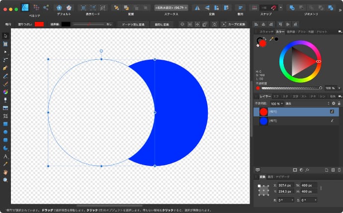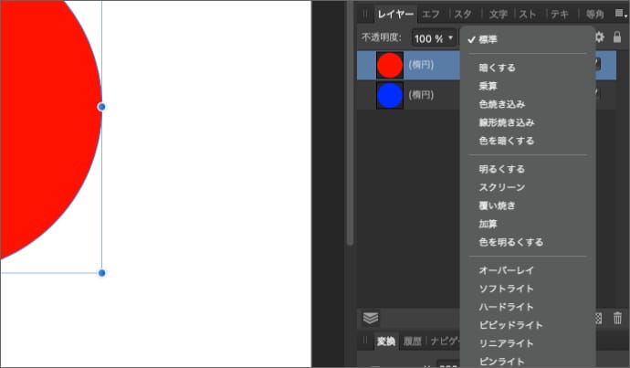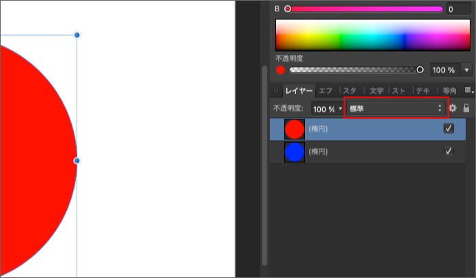 ブレンドモードを標準以外に変えることで、重なった色が種類に応じて変化します。