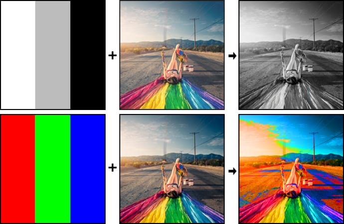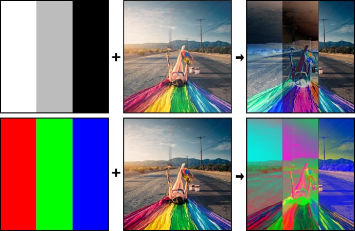 HLS(色相・彩度・輝度)に影響するタイプのブレンドモード