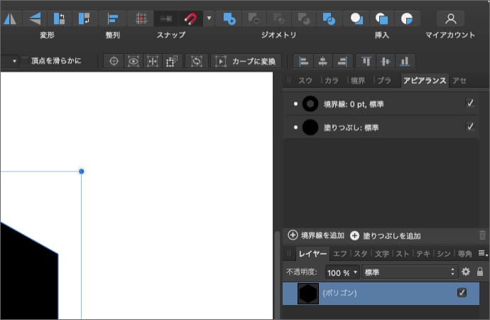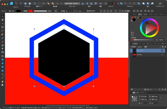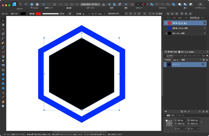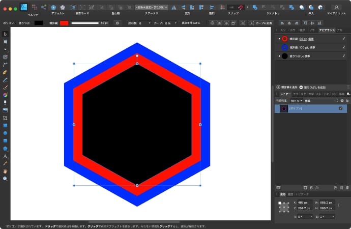 Mac版のAffinity Designerでレイヤーの塗りつぶしと境界線の間に隙間を開ける方法について解説します。