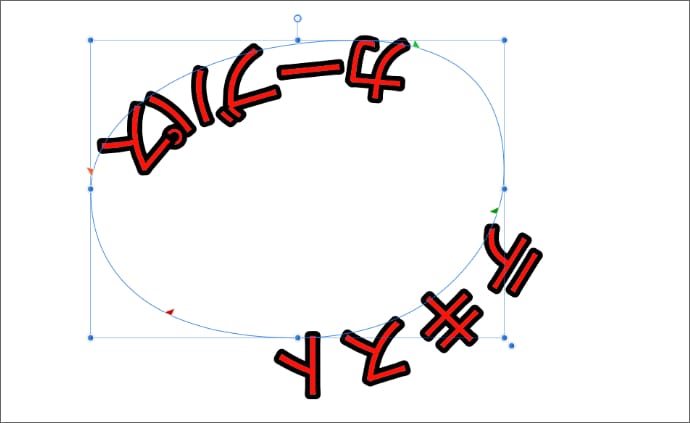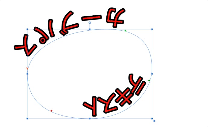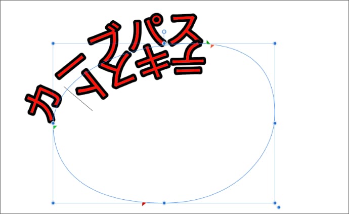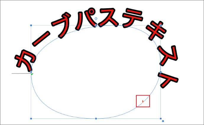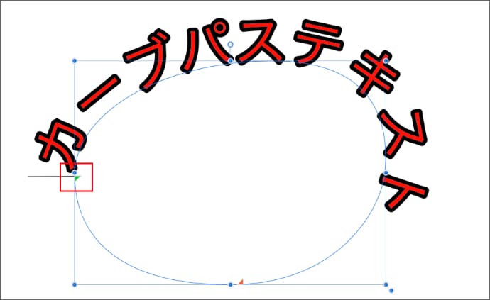 緑色のマークは文字の開始位置で、マウスでドラッグすると、カーブ上を動かすことができます。