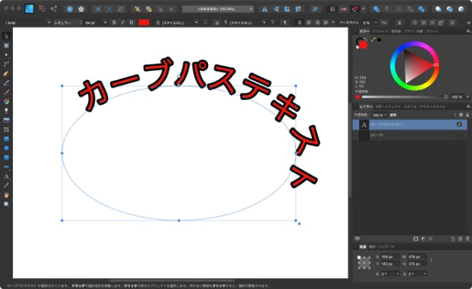 Affinity Designerでカーブの形に合わせて文字を並べる方法