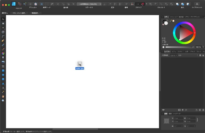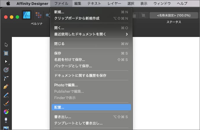 埋め込みとは、画像レイヤーの画像をAffinity Designerのドキュメント内に保存する配置方法です。