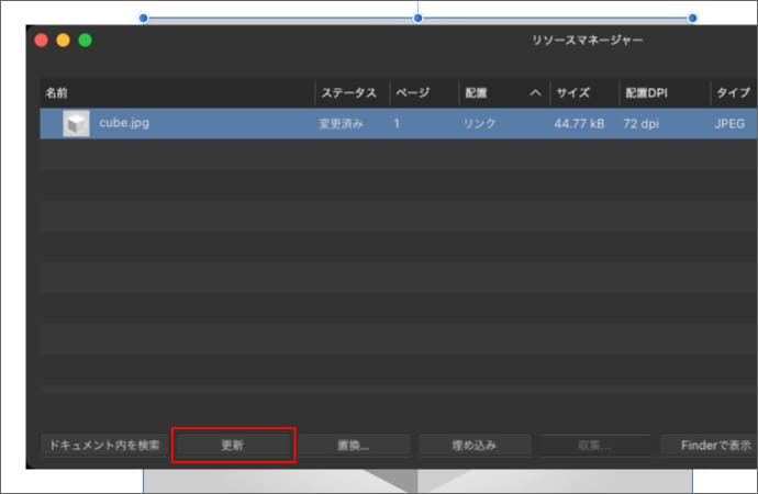 元の画像が変更された場合は、ドキュメントを開き直すか、リソースマネージャーで更新を行うと、変更内容が反映されます。