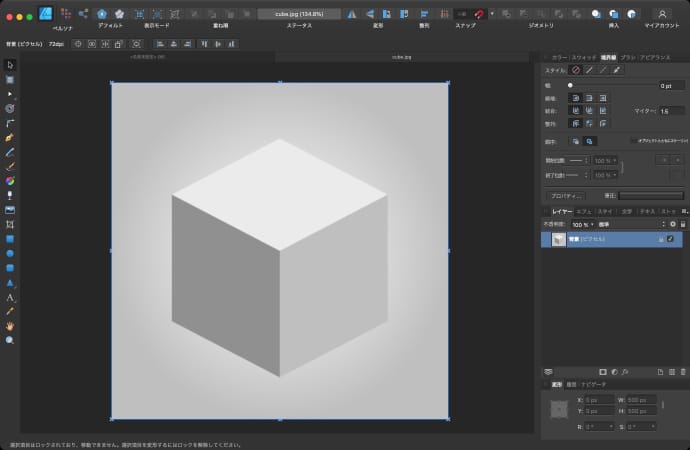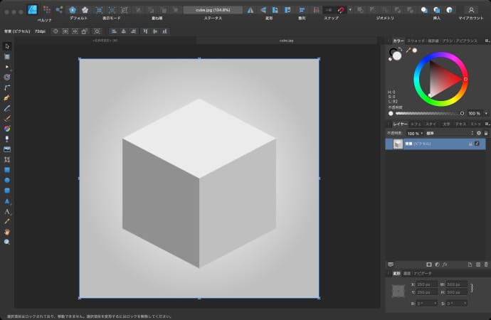 ちなみに、画像ファイルをAffinity Designerで直接開くと、画像レイヤーではなくピクセルレイヤーになります。