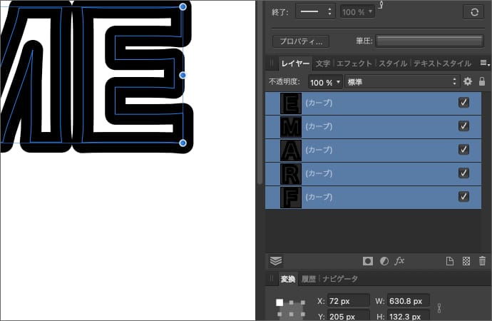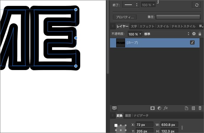 文字をカーブに変換する