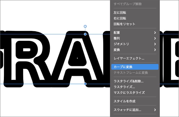 文字を右クリックして「カーブに変換」をクリックします。