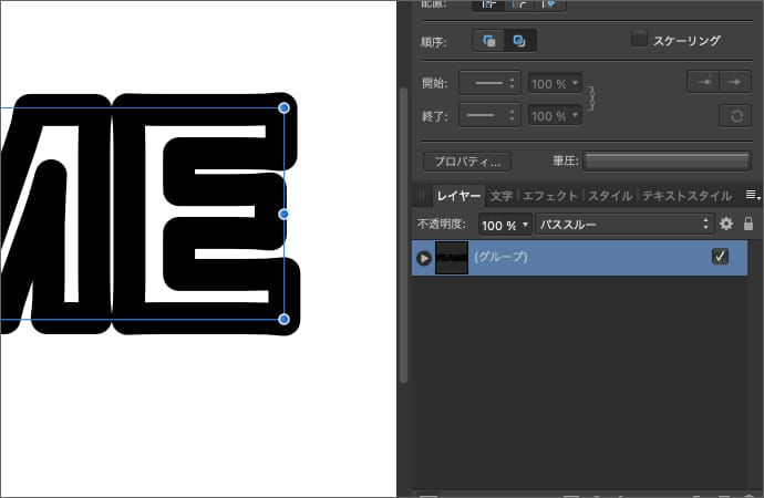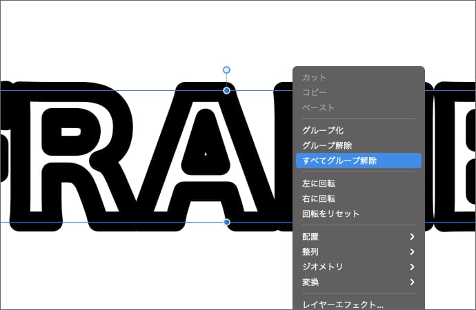 複数文字をカーブに変換した場合はグループになっているので、一度バラバラにします。