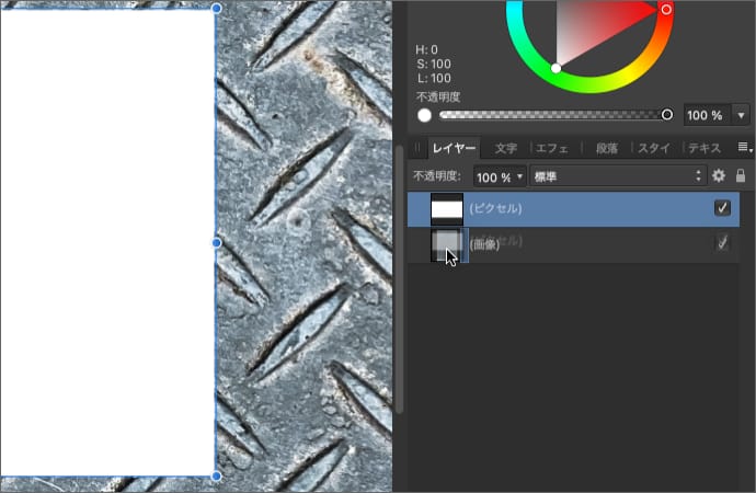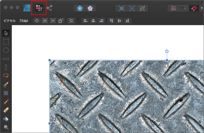 ピクセルレイヤー(あるいはマスクレイヤー)を選択している状態でピクセルペルソナに切り替えます。