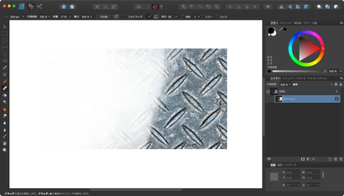 このマスクの透明度をグラデーションを使って変化させることで、レイヤーの境界線をぼかして徐々に透明にしていくことができます。