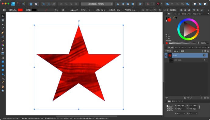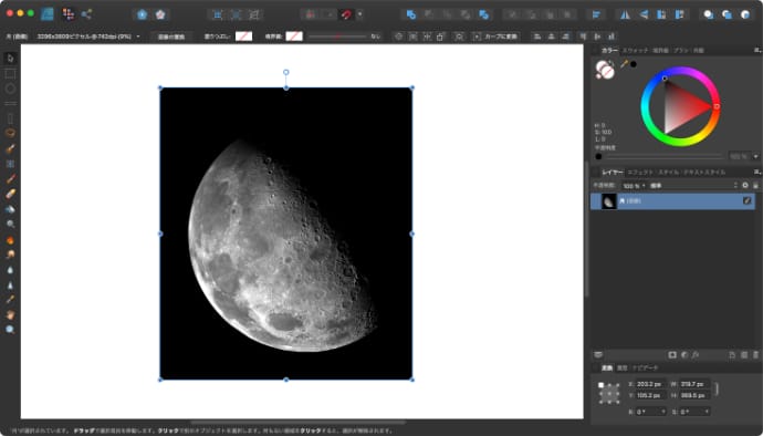 それぞれのレイヤーを選択すれば、オブジェクトの形の変更したり、ピクセルレイヤーの位置を動かすことができます。