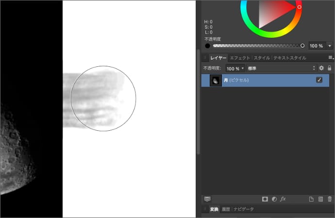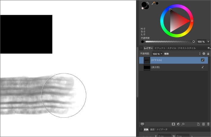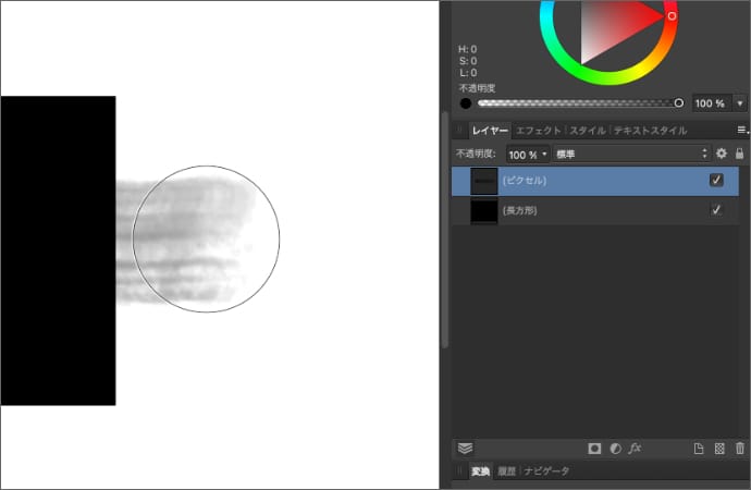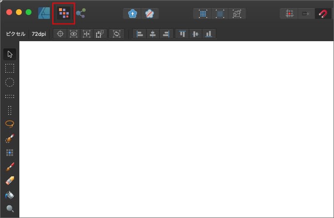 ピクセルレイヤーは、ピクセルペルソナに切り替えることで、ペイントブラシや消去ブラシなどのツールを使ってピクセルの編集ができます。![]()