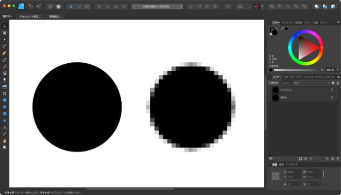 Affinity Designerのレイヤーには、文字や図形、カーブなどのベクトルレイヤー以外に、ピクセルデータとして編集ができるピクセルレイヤーがあります。