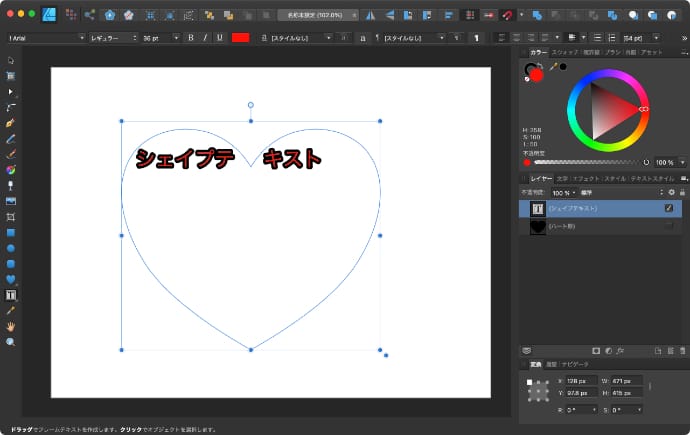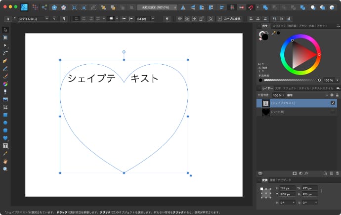 Affinity Designerでカーブの形に合わせて文字を折り返す方法