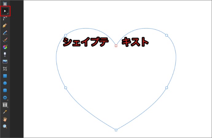 シェイプテキストをノードツールで選択すると、ノードが表示されます。