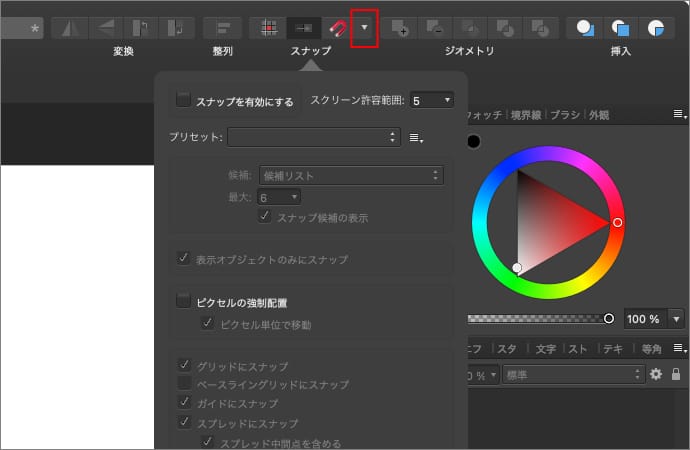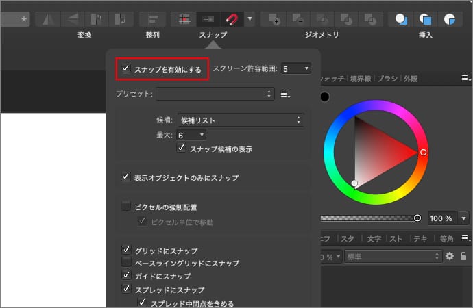 Mac版のAffinity Designerのスナップの設定と各設定毎のスナップの挙動について解説します。