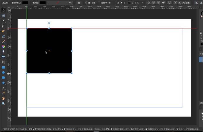 「ガイドにスナップ」を有効にすると、ガイドを表示している時にレイヤー全体や頂点をドラッグすると、水平ガイドと垂直ガイドにスナップします。