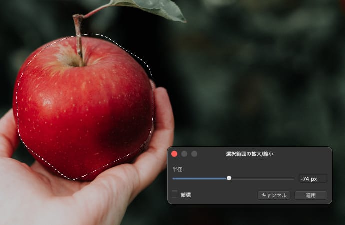選択範囲を綺麗に整えたい場合に、選択範囲を特定の条件に従って調整することができます。