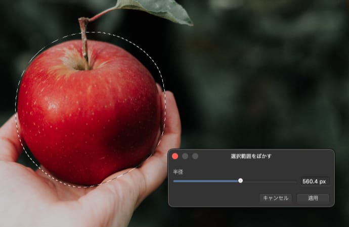 選択範囲の角を丸くして境界線周辺を半透明にすることができます。