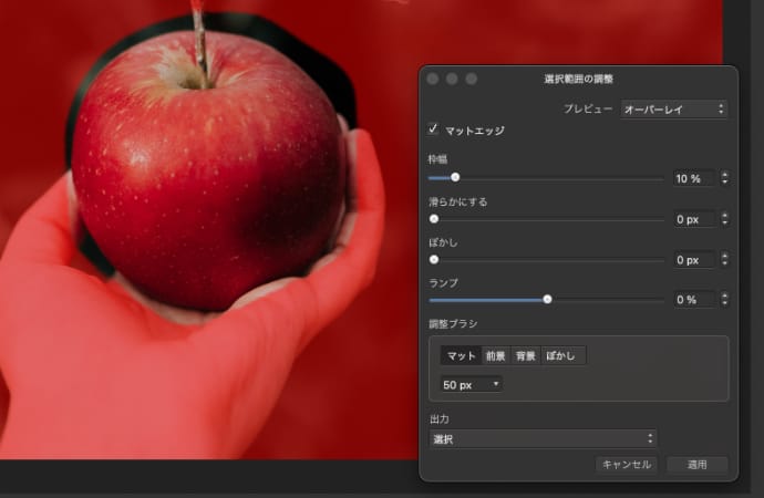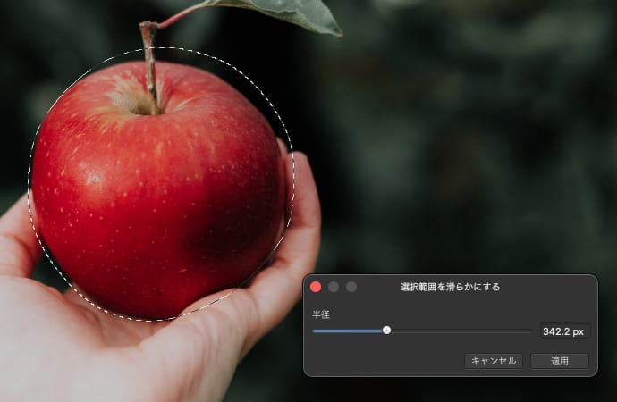 半径を動かすと、選択範囲が滑らかになっていきます。