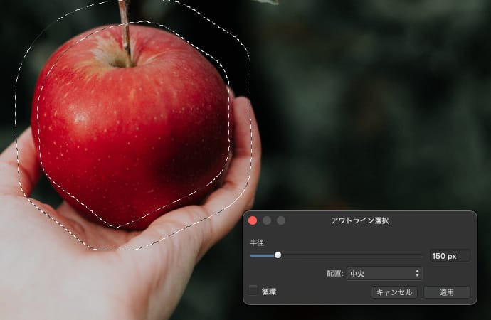 選択範囲の境界線に幅を持たせて、その幅内を選択範囲にすることができます。