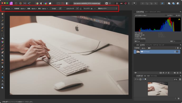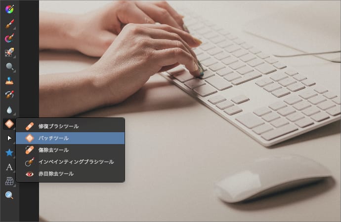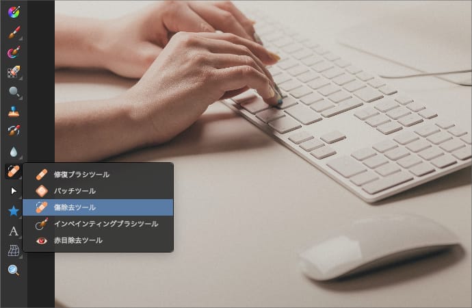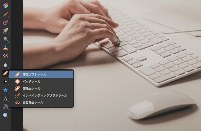 Affinity Photoで写真の一部を消すための方法はいくつかあり、消したいパーツによって使い分けができるようになっています。