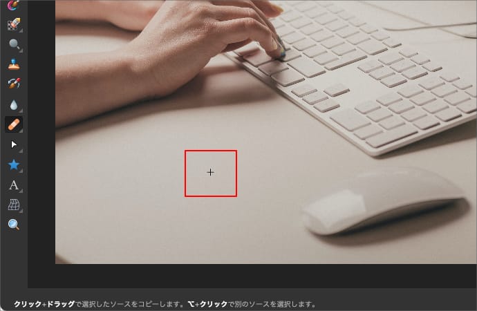 そのままドラッグし続けると、コピー元によっては余計な部分が映り込んでしまいますが、一度マウスを話してもう一度ドラッグすると、コピー元の中心に戻ります。