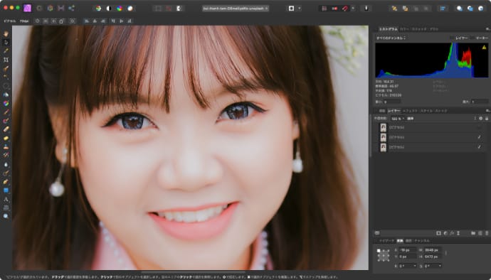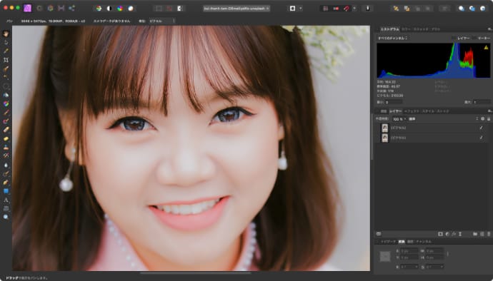 Mac版のAffinity Photoで目を大きく加工する方法について解説します。