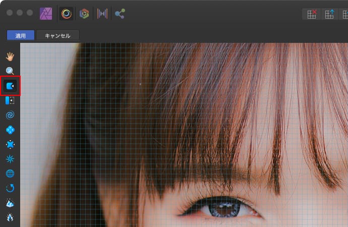 ゆがみペルソナのツールから、ゆがみピンチツールをクリックします。