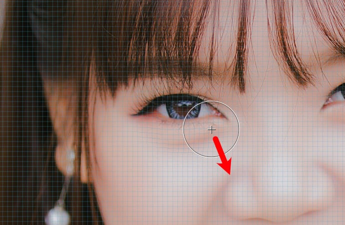 目を大きく加工する場合、黒目も一緒に大きくするのか、黒目はできるだけ大きくしないのかによって加工の仕方が変わります。