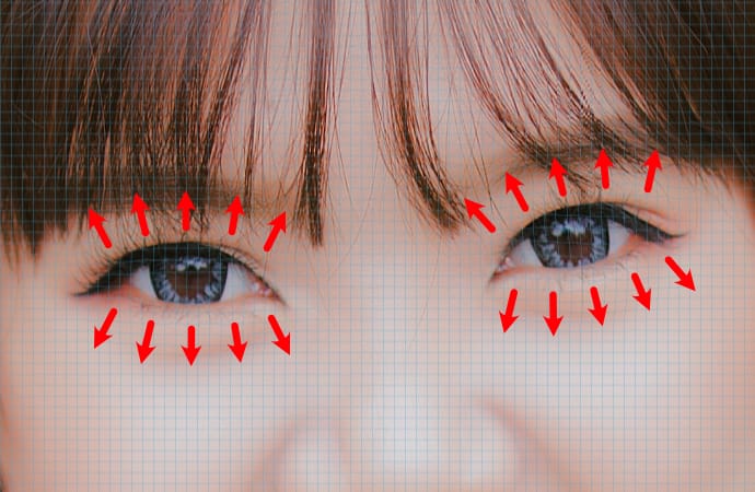 黒目をできるだけ大きくしたくない場合は、目の周りを上下に引っ張ります。