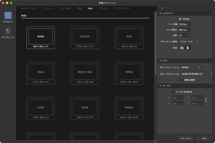 最終的な画像のサイズが決まっていたり、既定の枠内に画像を配置したい場合は白紙から始めると分かりやすいです。
