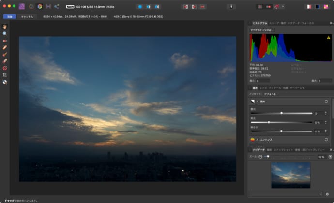 RAWファイルをAffinity Photoで開くと、RAW現像ができます。