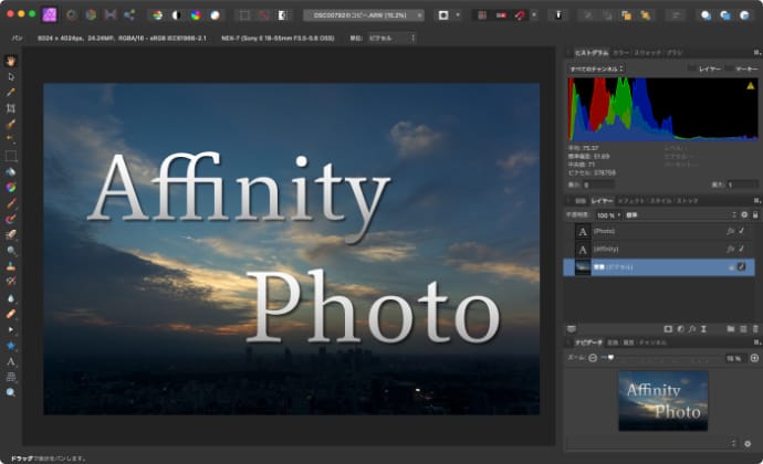 現像後は、そのままAffinity Photoで写真加工を行うこともできます。
