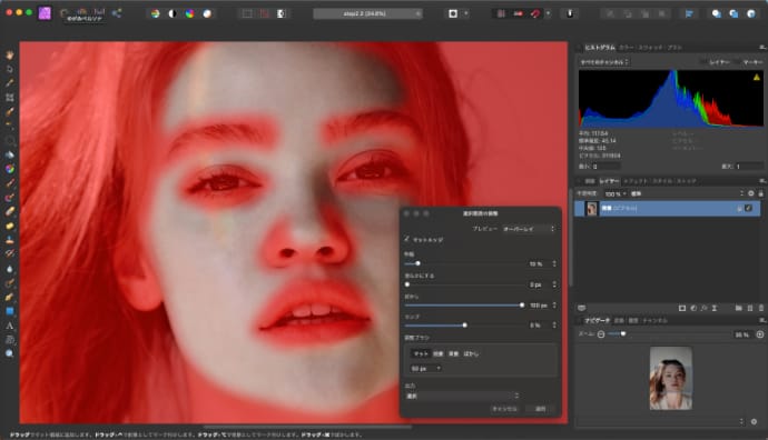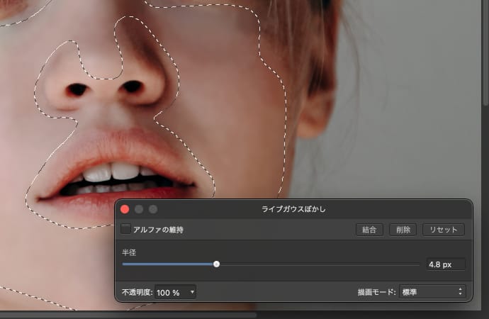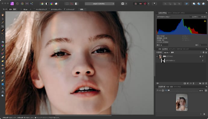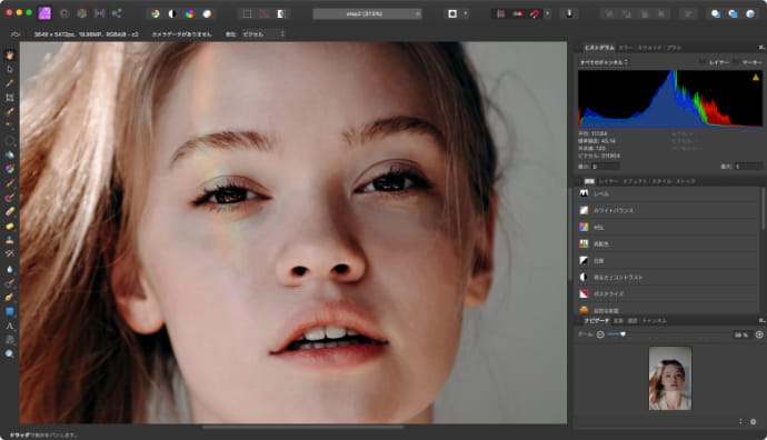 Mac版のAffinity Photoで人の肌をできるだけ自然に綺麗に加工する方法について解説します。