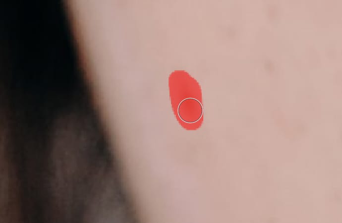 肌以外の部分が含まれている場合は、調整ブラシを背景にして修正します。