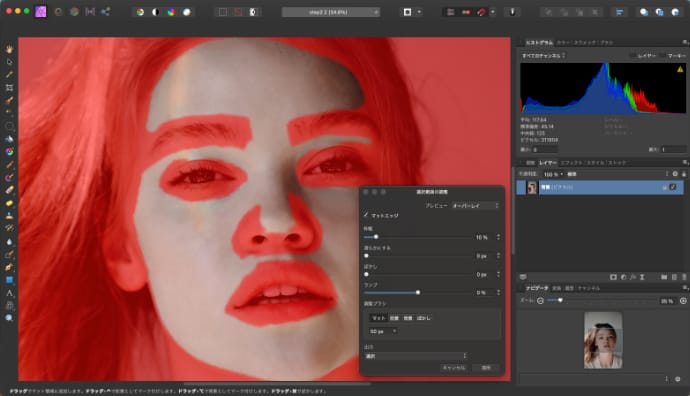 Mac版のAffinity Photoで写真の一部を選択した後により自然に切り取れるように選択範囲を微調整する方法について解説します。