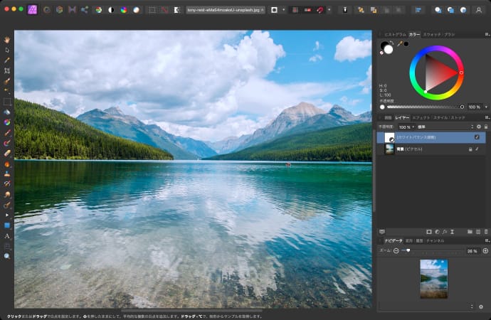 Mac版のAffinity Photoで写真のホワイトバランスを自動または手動で変える方法について解説します。