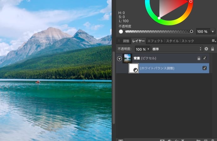 以上、Affinity Photoで写真のホワイトバランスを変える方法でした。
