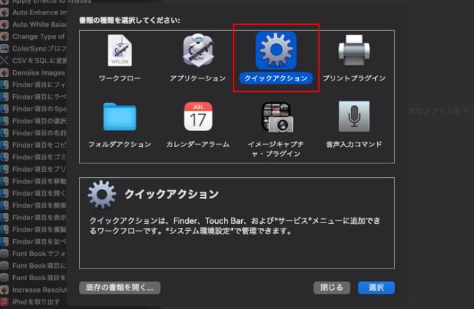 書類の種類からクイックアクションを選択します。