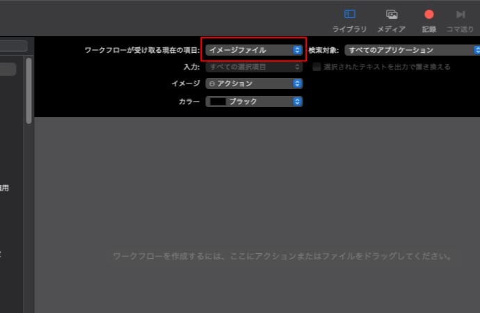 ワークフローが受け取る現在の項目から「イメージファイル」を選択します。