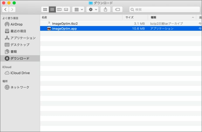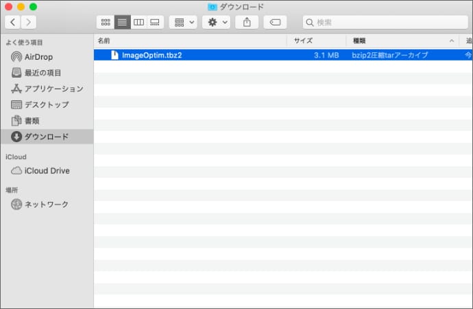 ダウンロードしたImageOptim.tbz2をダブルクリックします。