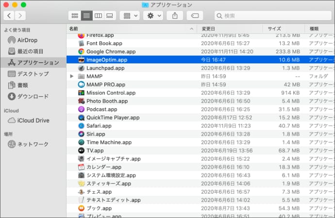 ImageOptim.appをそのままアプリケーションフォルダにドラッグします。