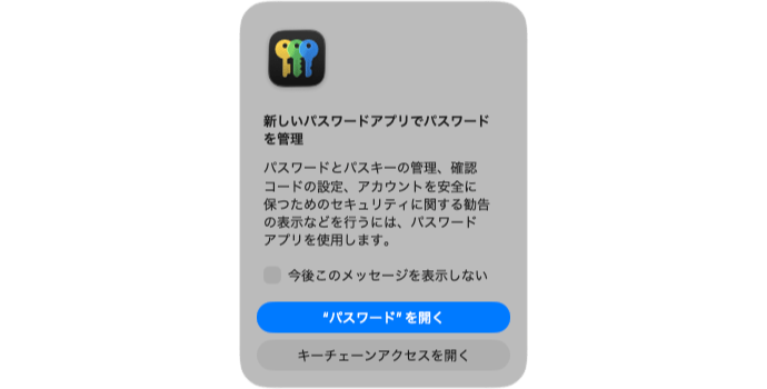 macOS Sequoiaからパスワードアプリが登場して、従来のMac標準のパスワード管理にキーチェーンアクセスが不要になりました。