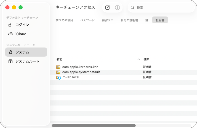 ちなみに証明書の管理は、MacでWEB開発を行う際に、ローカル環境でHTTPSを使うために必要だったります。