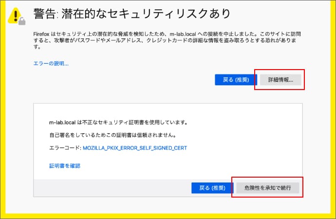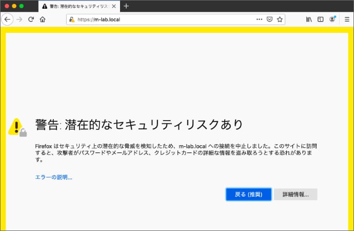 ついでにFirefoxでも開いてみたところ、警告が表示されました。
