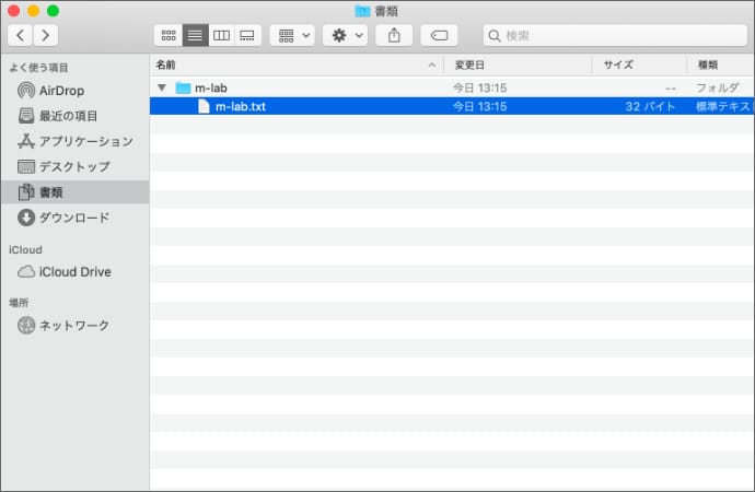 ファイル名は適当でいいので、m-lab.txtという名前で作ったフォルダに保存します。