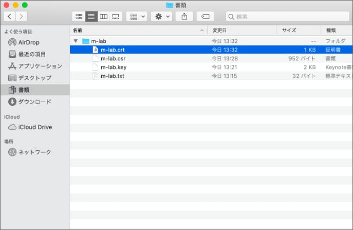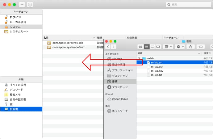 そこに先ほど作った証明書ファイル(m-lab.crt)をドラッグします。